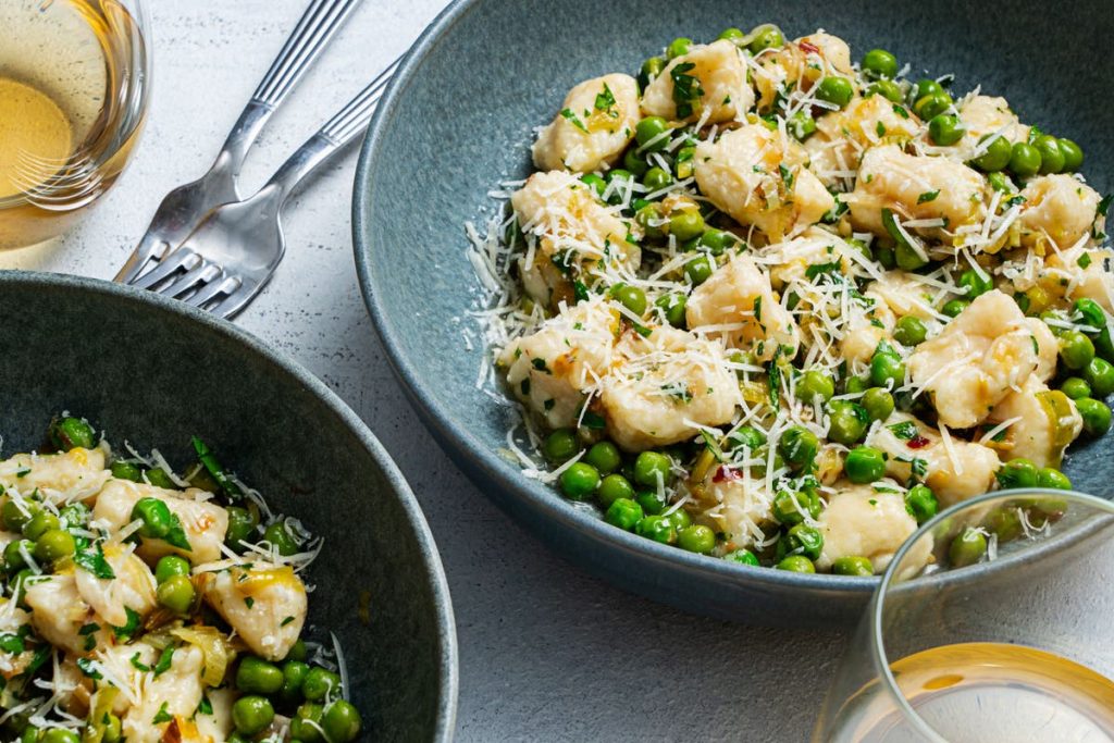 - Fügen Sie die gefrorenen Erbsen und ein Glas Wasser hinzu. Sie sollten etwa 5 Minuten garen.
